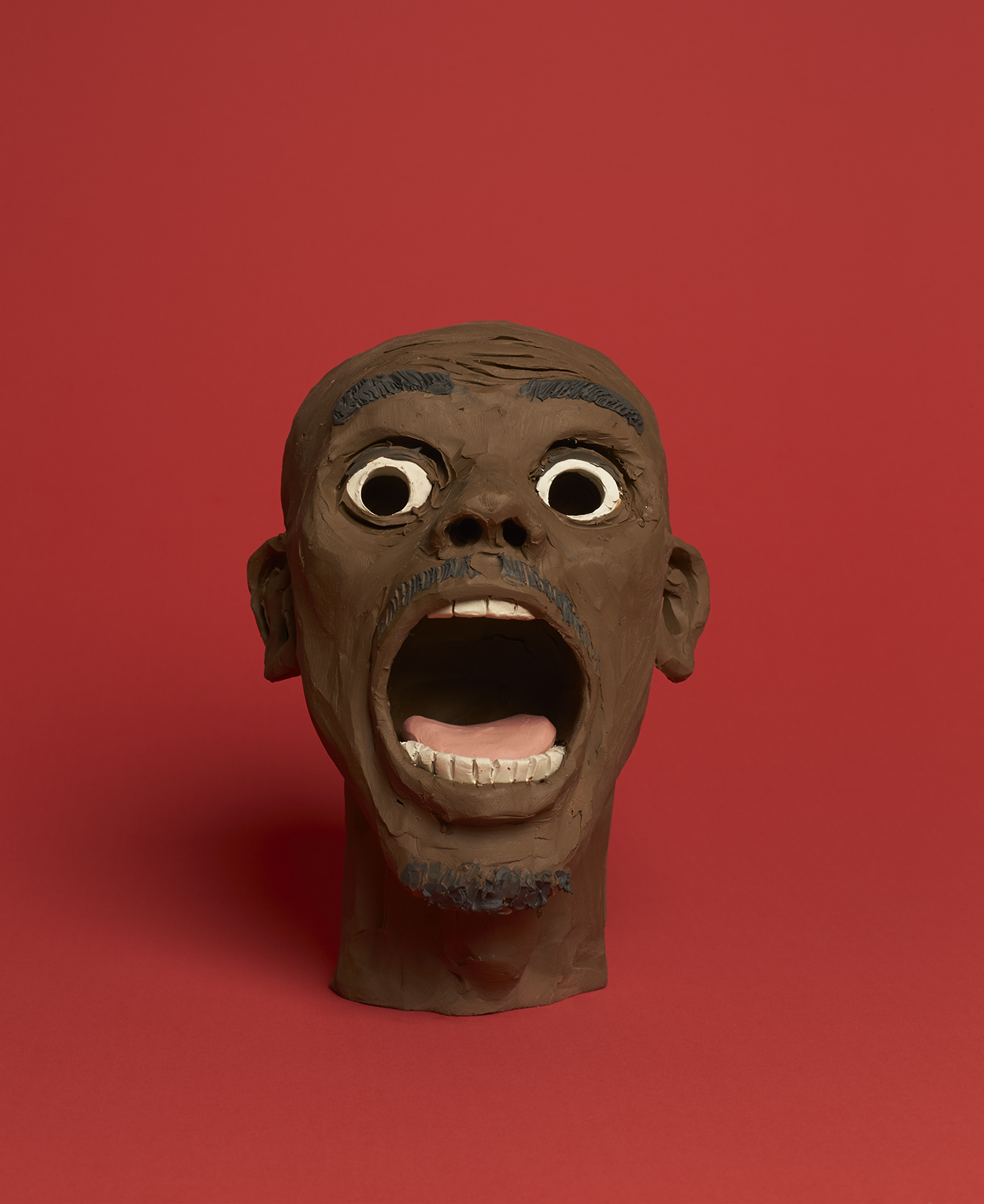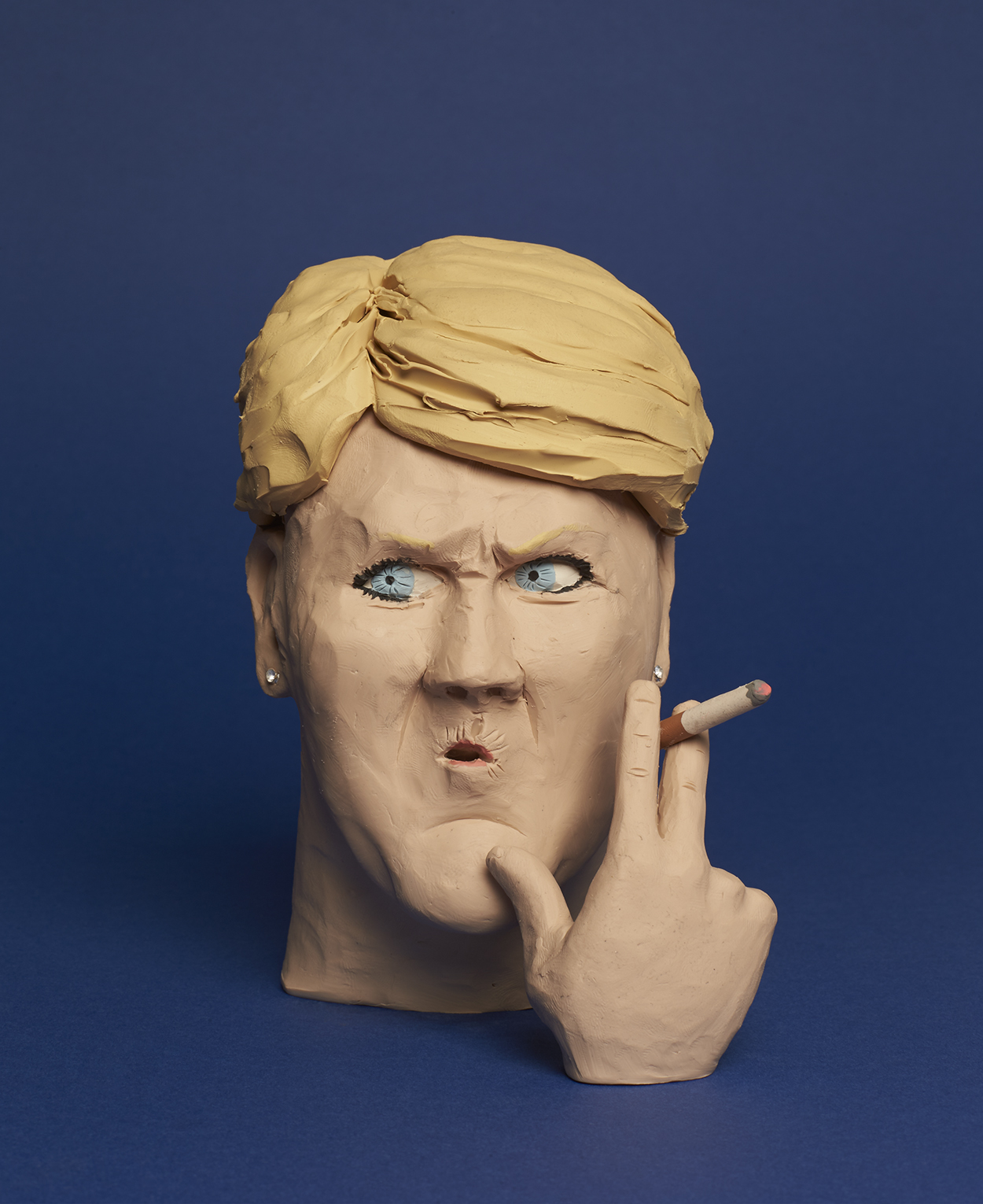 Taking a peek inside his cupboard full of heads that are due to be squashed back down, the impermanent, reusable nature of his material choice deserves praise: “I used to use resin which is awful for the lungs and the environment. Now I use plasticine, made from petroleum jelly (vaseline) which is a by-product of the oil industry.”