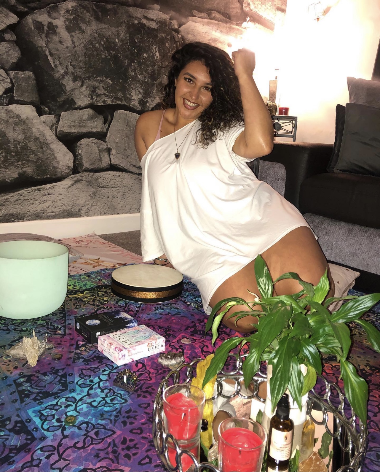 Rukayah surrounded by the things that guide her [instagram: @Reikyremedies]